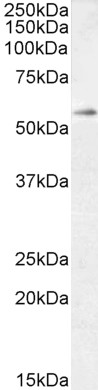 Western Blot Approx 55kDa band observed in Human Thymus and in lysates of cell line Jurkat and approx. 60kDa in lysates of cell line HeLa, (calculated MW of 52.9kDa according to NP_009093.1 and 54.2kDa according to NP_001161299.2) .Recommended concentra