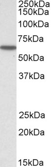 Western Blot Approx 60kDa band observed in lysates of cell line HeLa (calculated MW of 57.8kDa according to NP_002258.2). Recommended concentration