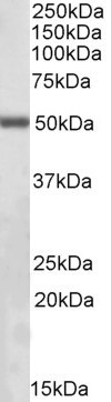 | Western Blot | Approx 52kDa band observed in Mouse Kidney lysates and in lysates of cell line NIH3T3 and 50-51kDa in HEK293, A431, HeLa and Jurkat lysates (calculated MW of 51.4kDa according to Human NP_004508.1 and Mouse NP_034692.2). Recommended concent |