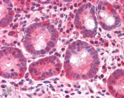| Immunohistochemistry | In paraffin embedded Human Small Intestine shows primarily nuclear staining in a number of cells of the lamina propria. Recommended concentration, 1-2µg/ml. |