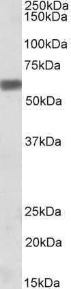 Western Blot Approx 60kDa band observed in lysates of Human Tonsil and lysates of cell line MOLT4 and Jurkat (calculated MW of 33.8kDa according to NP_000573.1). The observed molecular weight corresponds to earlier findings in literature (Singh et al,