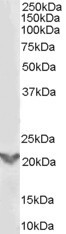 | Western Blot | Approx 22kDa band observed in lysates of A431, A549 and HEK293 cell lines (calculated MW of 25.9kDa according to NP_068581.1). Recommended concentration |