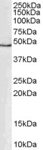 | Western Blot | Approx 48kDa band observed in lysates of human liver, placenta and peripheral blood mononucleocytes (calculated MW of 42.8kDa according to NP_002040.1. Recommended concentration |