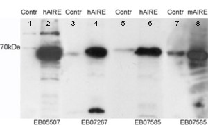 Home Page > ANTIBODY > POLYCLONAL ANTIBODY > Goat Polyclonal Antibodies >  Goat anti-AIRE (isoform 1) Antibody