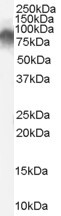 Western Blot Approx 80kDa band observed in Human Lymph Node, Tonsil and Spleen lysates (calculated MW of 68.6kDa according to NP_002897.1). The same 80kDa was also observed in lysates of several Mouse and Rat tissues and in lysates of cell lines NIH3T3