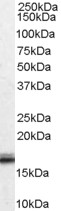 | Western Blot | Approx 17kDa band observed in Human Ovary and Testis lysates and also in lysates of Mouse and Rat Testis and Brain and of all human and mouse cell lines tested (calculated MW of 19.7kDa according to NP_937799.1). Recommended concentration |