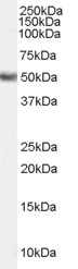| Western Blot | Approx 50kDa band observed in Human Lung lysates (calculated MW of 51.9kDa according to NP_037534.2). Recommended concentration |