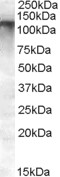 Western Blot Approx. 125kDa band observed in Human Breast and Human Testis lysates (calculated MW of 150kDa according to NP_660187.1). Recommended concentration