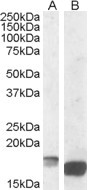 Western Blot Approx. 18kDa band observed in Mouse Kidney and approx. 17kDa doublet observed in Mouse Spleen lysates (calculated MW of 18.8kDa according to NP_033905.3). Recommended concentration