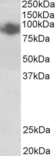 Western Blot Approx 90kDa band observed in lysates of cell lines A431 and A549 (calculated MW of 91.8kDa according to NP_001189.2). Recommended concentration