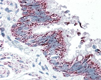| Immunohistochemistry | In paraffin embedded Human Lung shows cytoplasm staining in the resporatory epithelium of the bronchus. Recommended concentration, 5-10µg/ml. |
