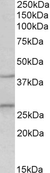 Western Blot Approx 27+38kDa bands observed in Mouse Brain lysates (calculated MW of 27.7kDa according to NP_073148.1). Primary incubation was 1 hour. The observed molecular weight corresponds to earlier findings in literature with different antibodies