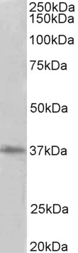| Western Blot | Approx 37kDa band observed in lysates of cell line HeLa and in rodent Brain lysates (calculated MW of 37.2kDa according to NP_001229793.1). Approx 35kDa band observed in Pig Brain lysates (calculated MW of 38.7kDa according to XP_005658963. |
