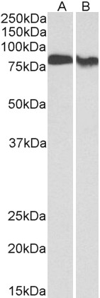 | Western Blot | Approx 80kDa band observed in lysates of Human Placenta and Rat Brain (calculated MW of 76.9kDa according to NP_997700.1). Recommended concentration |