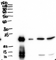 Western Blot Approx 26kDa band observed in secretions of Human primary airway cells in culture-and in Human Bronchoalveolar Lavage fluid (calculated MW of 26.7kDa according to NP_057667.1). Recommended concentration