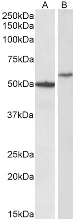 | Western Blot | Approx 50kDa band observed in Human Hippocampus lysates and 60kDa in lysates of cell lines HeLa and Jurkat (calculated MW of 35.2kDa according to NP_001768.1). The observed molecular weights correspond to glycosylated forms. Recommended con |