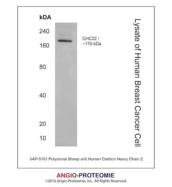 Specificity Detects human Clathrin Heavy Chain 2/CHC22 in direct ELISAs and Western blots. In direct ELISAs, less than1% cross-reactivity with recombinant human CHC17 is observed.