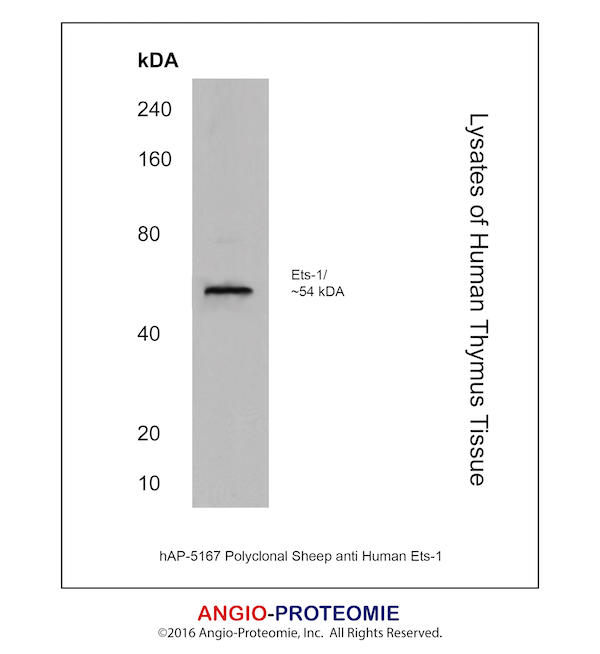 Preparation This antibody was produced from a sheep immunized with purified human Ets-1 protein.