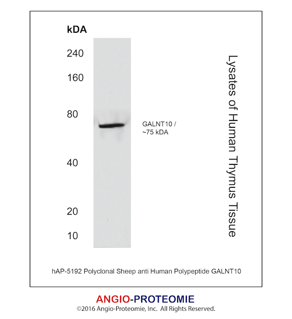 Preparation This antibody was produced from a sheep immunized with purified human Polypeptide GalNac Transferase 10/GALNT10 protein.