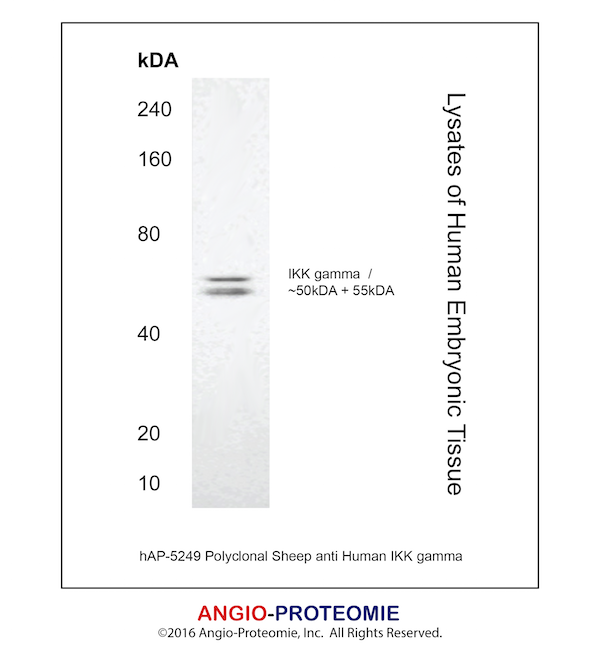 Preparation This antibody was produced from a sheep immunized with purified human IKK gamma protein.