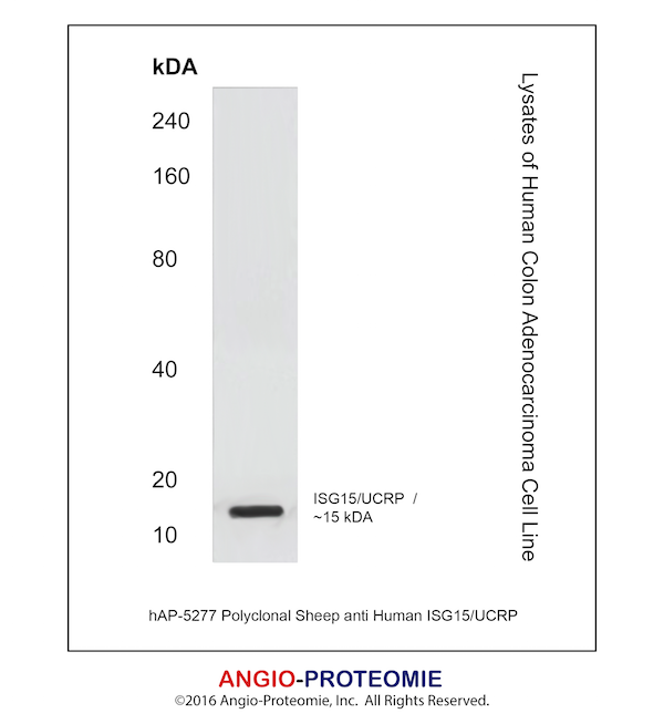 Preparation This antibody was produced from a sheep immunized with purified human ISG15/UCRP protein.