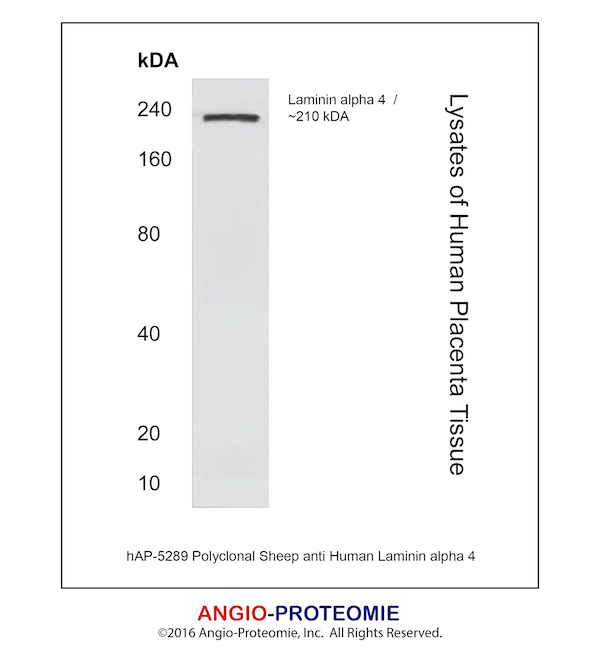 Preparation This antibody was produced from a sheep immunized with purified human Laminin alpha 4 protein.
