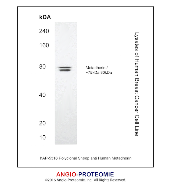 Preparation This antibody was produced from a sheep immunized with purified human Metadherin protein.