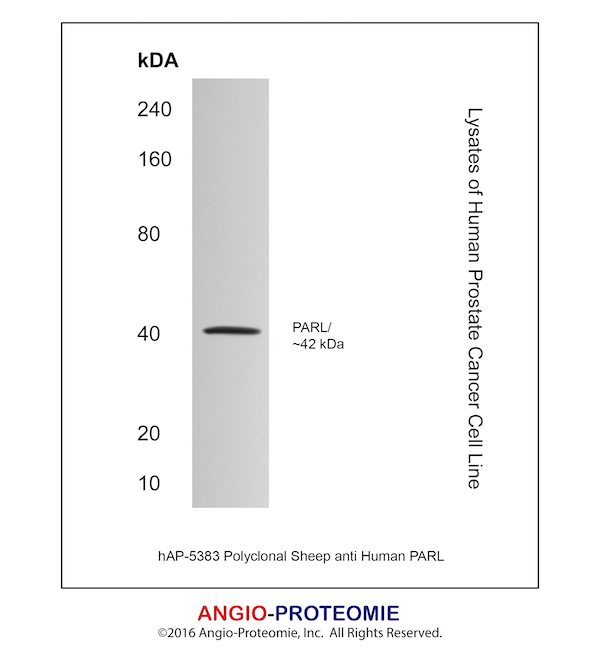 Preparation This antibody was produced from a sheep immunized with purified human PARL protein.