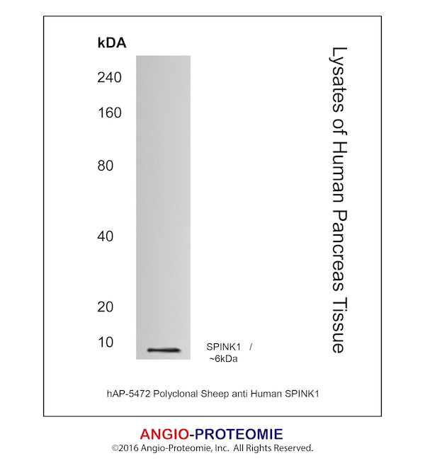 Preparation This antibody was produced from a sheep immunized with purified human SPINK1 protein