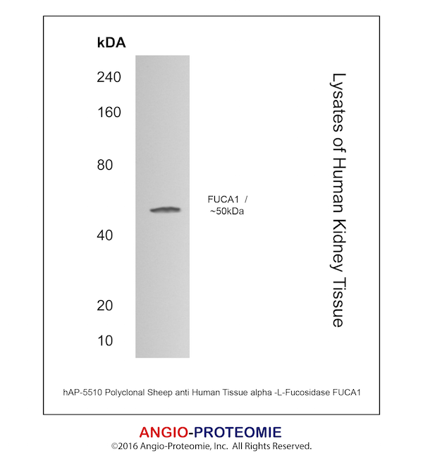Preparation This antibody was produced from a sheep immunized with purified human Tissue alpha -LFucosidase/FUCA1 protein.