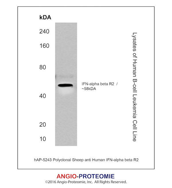 Preparation This antibody was produced from a sheep immunized with purified human IFN-alpha/beta R2 protein.