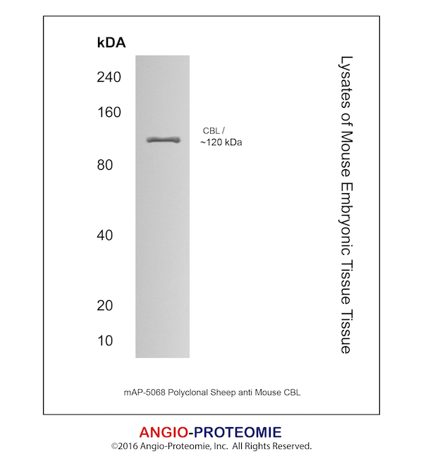 Preparation This antibody was produced from a sheep immunized with purified mouse CBL protein.
