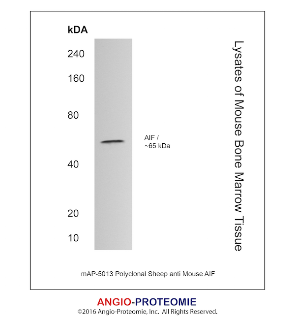 Preparation This antibody was produced from a sheep immunized with purified mouse AIF protein.