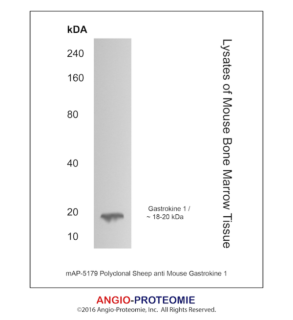Preparation This antibody was produced from a sheep immunized with purified mouse Gastrokine 1 protein.