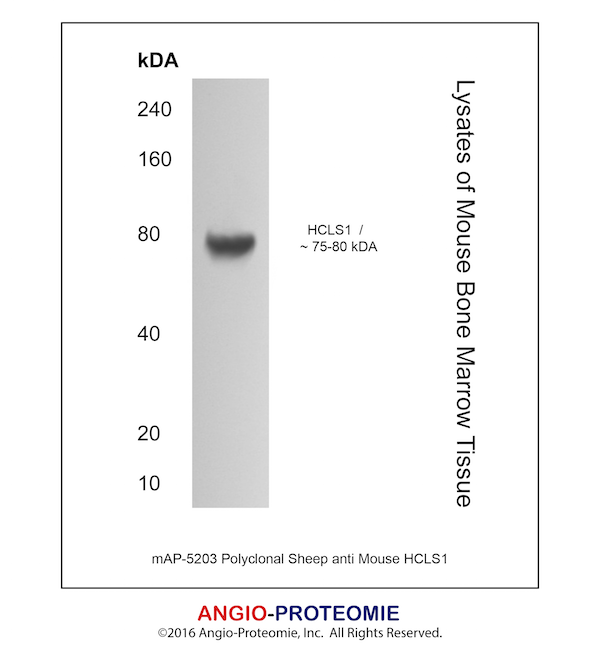 Preparation This antibody was produced from a sheep immunized with purified mouse HCLS1 protein