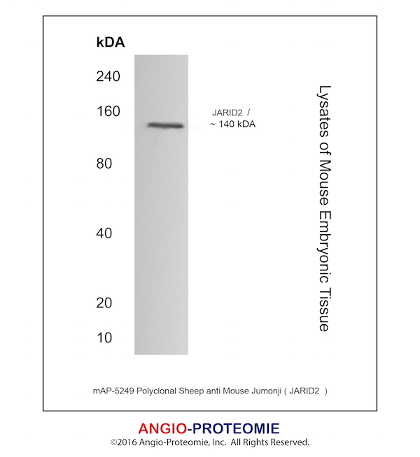 Preparation This antibody was produced from a sheep immunized with purified mouse Jumonji/JARID2 protein.