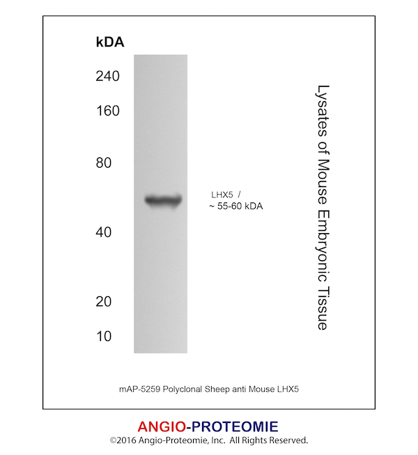 Preparation This antibody was produced from a sheep immunized with purified mouse LHX5 protein.