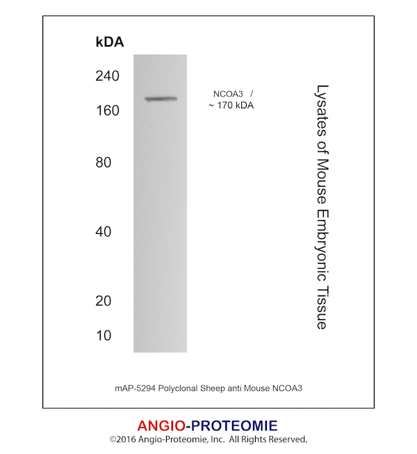 Preparation This antibody was produced from a sheep immunized with purified mouse NCOA3 protein.