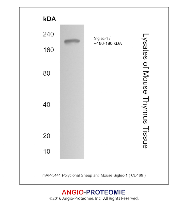 Preparation This antibody was produced from a sheep immunized with purified mouse Siglec-1/CD169 protein.