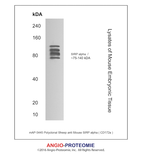 Preparation This antibody was produced from a sheep immunized with purified mouse SIRP alpha/CD172a protein.