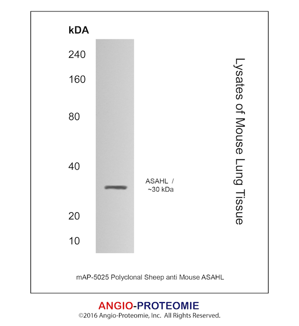 Preparation This antibody was produced from a sheep immunized with purified mouse ASAHL protein.