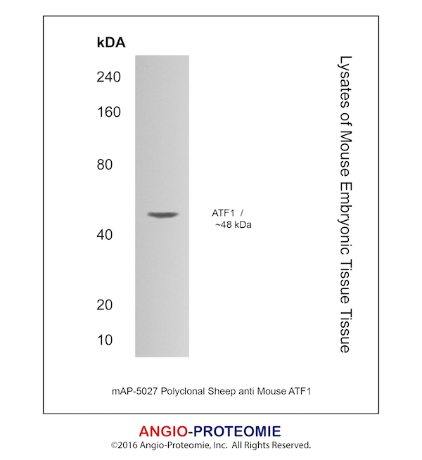 Preparation This antibody was produced from a sheep immunized with purified mouse ATF1 protein.