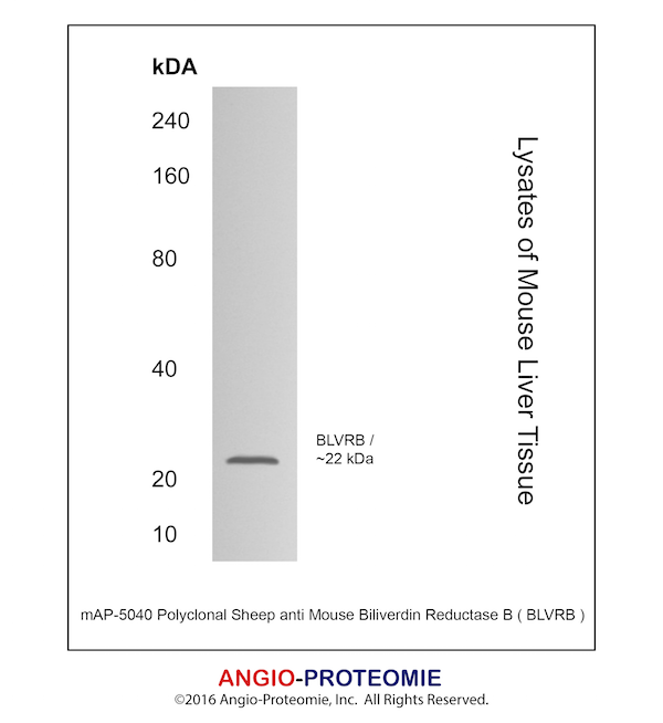 Preparation This antibody was produced from a sheep immunized with purified mouse Biliverdin Reductase B/BLVRB protein.