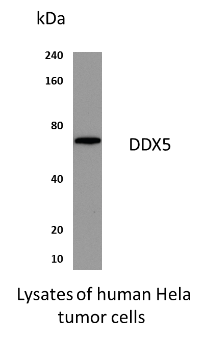 Preparation This antibody was produced from a hybridoma (mouse myeloma fused with spleen cells) from a mouse immunized with recombinant human DDX5. DDX5 is also called p68 RNA helicase and is a 68kDa member of the DEAD box family of RNA helicases that contain the conserved Asp­Glu­AlaAsp (DEAD) motif.