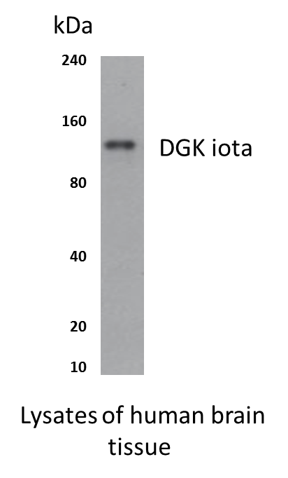 Preparation This antibody was produced from a hybridoma (mouse myeloma fused with spleen cells) from a mouse immunized with recombinant human DGK-iota (Diacylglycerol kinase iota), DGK-iota is an approximately 110 kDa kinase that phosphorylates the lipid diacylglycerol.
