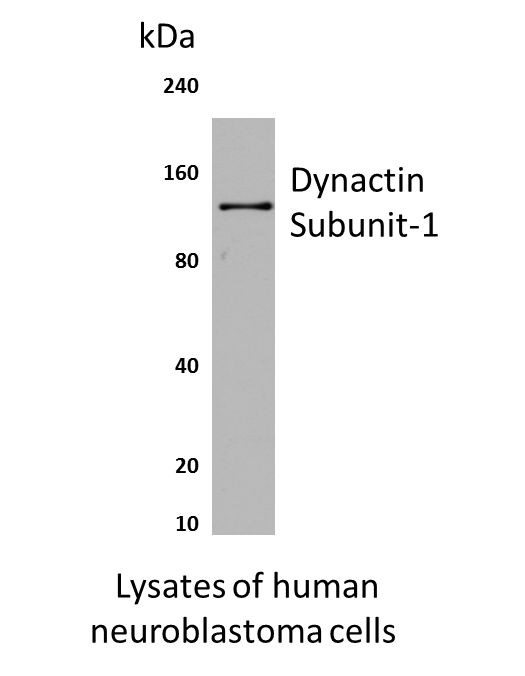 Preparation This antibody was produced from a hybridoma (mouse myeloma fused with spleen cells) from a mouse immunized with recombinant human Dynactin Subunit 1 (DCTN1). DCTN1 is also called DAP-150, p150-1A and p150glued and is a 140-150kDa member of the dynactin 150kDa subunit family of proteins