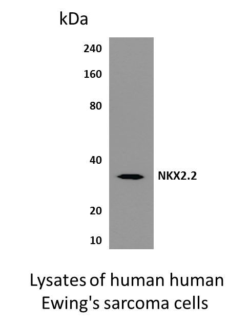 Preparation This antibody was produced from a hybridoma (mouse myeloma fused with spleen cells) from a mouse immunized with recombinant human NKX2.2. NKX2.2 is also known as NKX2-2 or NKX2B and is an approximately 30kDa homeobox nuclear transcription factor of the NKX2 protein family.