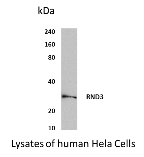 Preparation This antibody was produced from a hybridoma (mouse myeloma fused with spleen cells) from a mouse immunized with Recombinant human RND3. RND3 is also called RhoE, is an approximately 27 kDa member of the Rho family, small GTPase superfamily of molecules.
