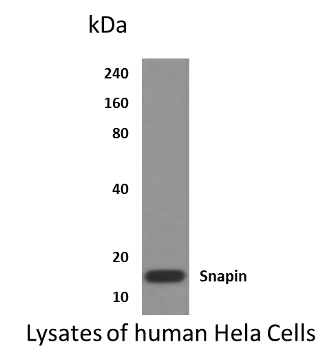 Preparation This antibody was produced from a hybridoma (mouse myeloma fused with spleen cells) from a mouse immunized with Recombinant human Snapin (SNARE-associated protein). Snapin is a 15kDa, vesicular phosphoprotein that contains a coiled-coil interacting domain.
