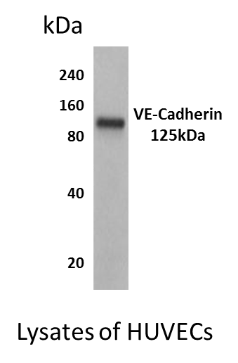 Preparation This antibody was produced from a hybridoma (mouse myeloma fused with spleen cells from a mouse immunized with Extracellular domain of human VE-Cadherin (Cadherin-5) recombinant protein